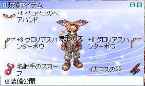 「7グロリアスハンターボウのLuk振り素打ち か、かっこいいタル~!」